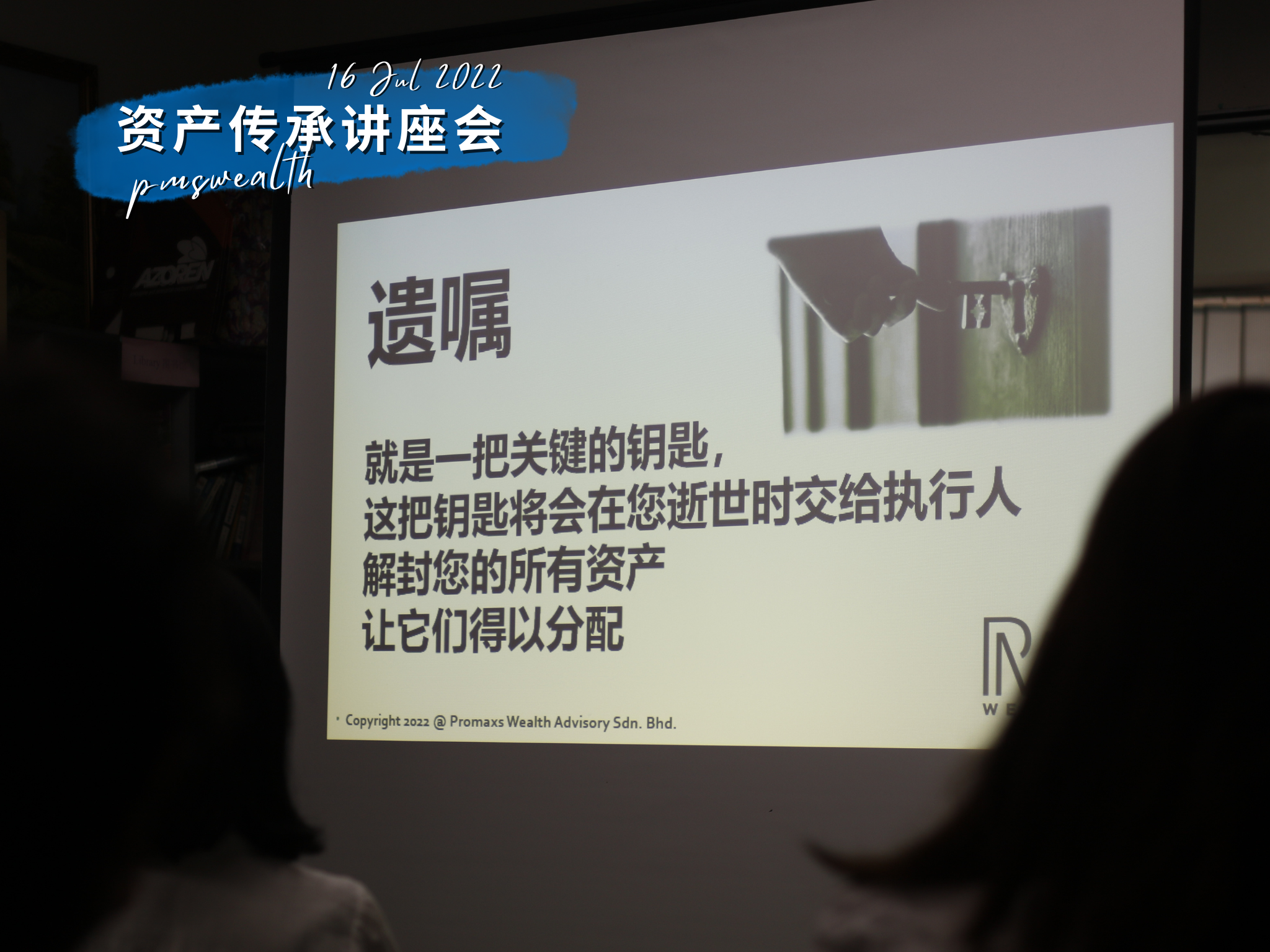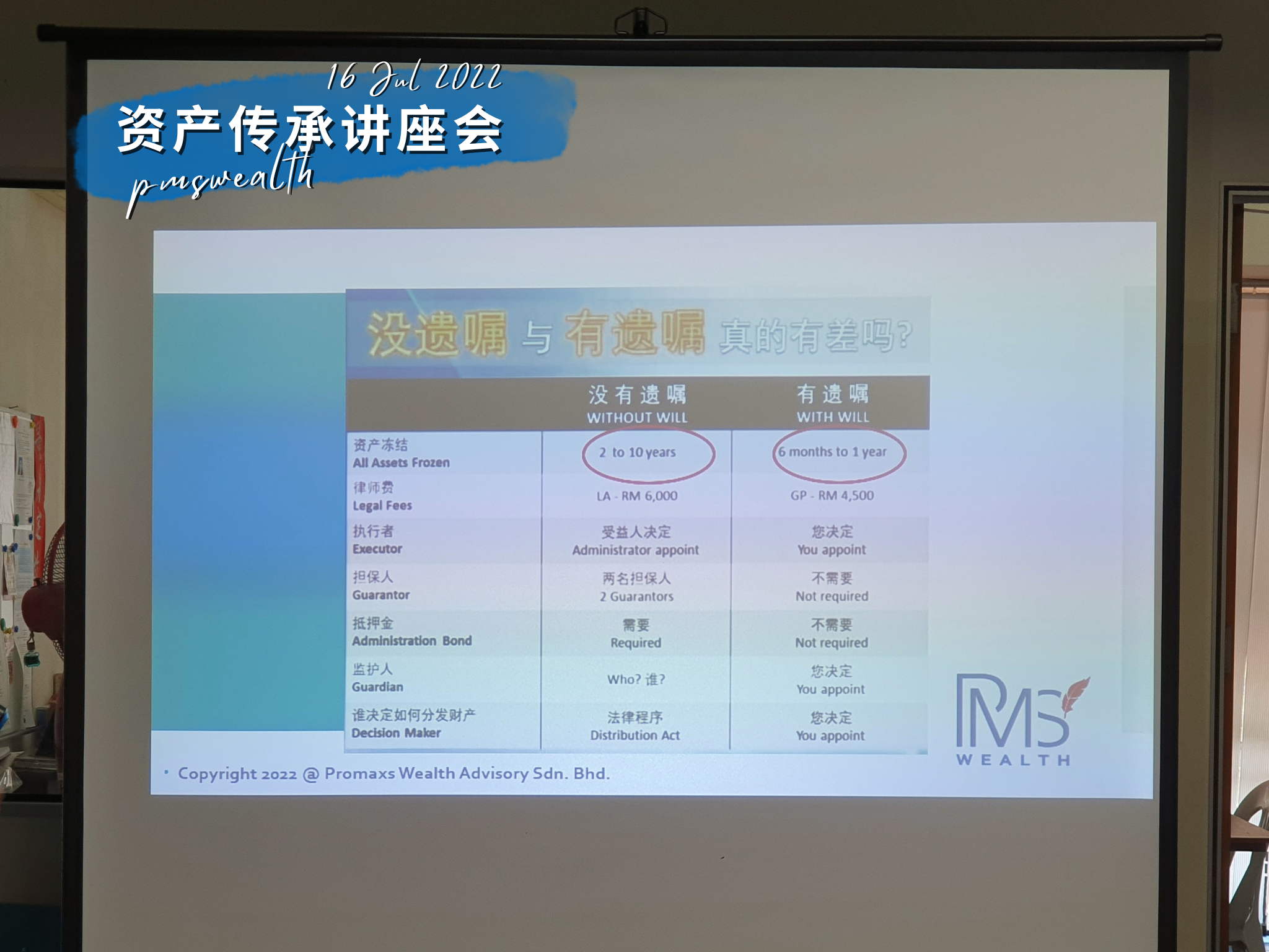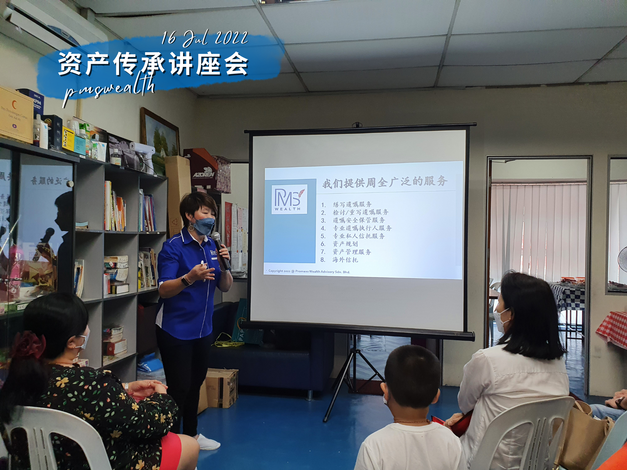 PMSWealth 在7月16日下午2点于 Taman Nusa Bestari 的创新补习学院,举办了”资产传承讲座“, 让大家了解立遗嘱的重要性,由衷感谢今天出席 分享会的朋友们,也让我们近距离的传达 遗嘱与信托 规划的重要性,尤其在这个变幻莫测的时代当中。